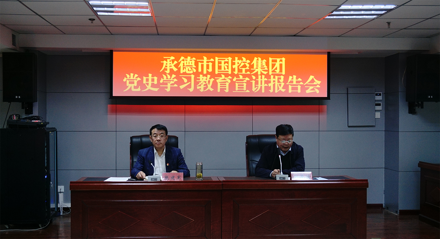 2021年4月15日,為深入推動黨史學習教育深入開展,國控集團舉辦黨史學習教育宣講報告會,集團公司黨委書記、董事長張建軍為全體黨員做宣講報告,黨委副書記、總經理徐俊儒主持會議,領導班子全體成員、全體黨員、本部全體職工及實際控制子公司中層及以上管理人員參加會議。