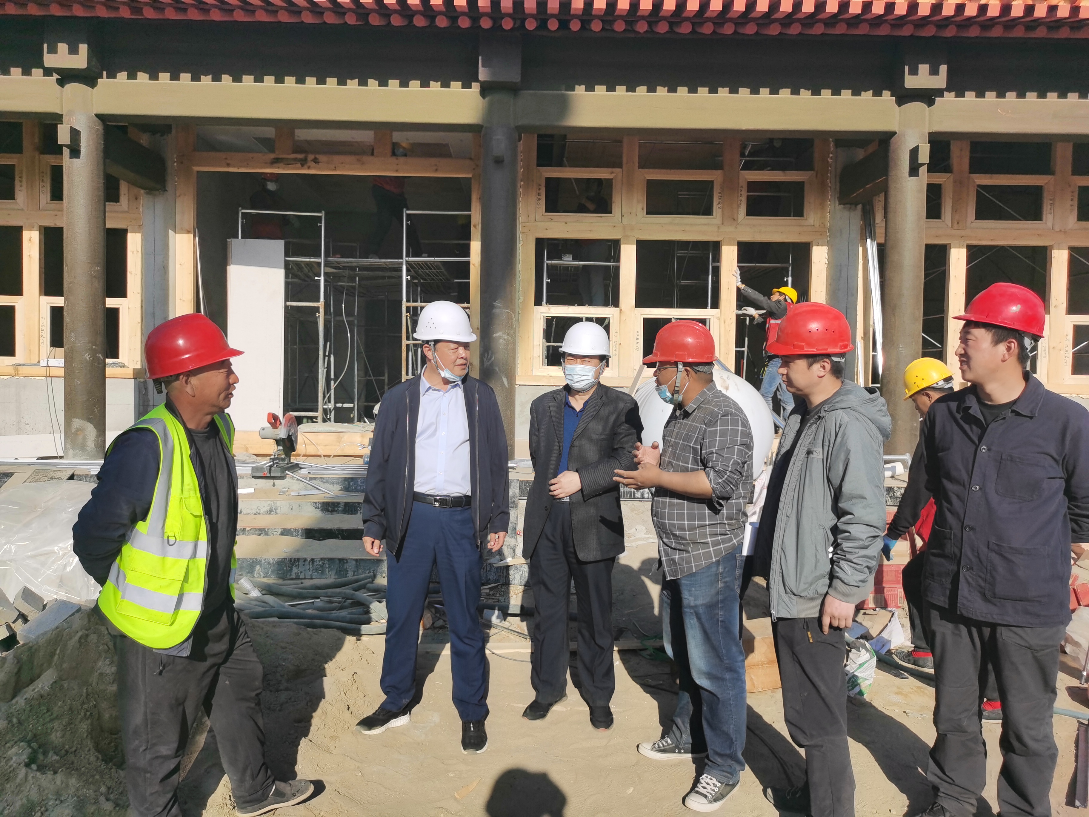 2021年5月1日,集團公司總經理徐俊儒、副總經理王京圍一行赴雄安郊野公園承德展園項目建設工地進行實地督導,并于當晚參加了建設項目調度例會。會上徐俊儒首先代表甲方向參與工程項目建設的監理人員、項目管理人員、工程造價人員及山西二建、鴻博公司等各工種施工人員致以五一國際勞動節日的祝賀。