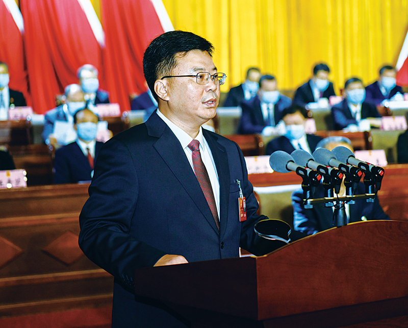 新當選的市人民政府市長柴寶良在大會上講話。? ? ? ? 本網記者王立群攝