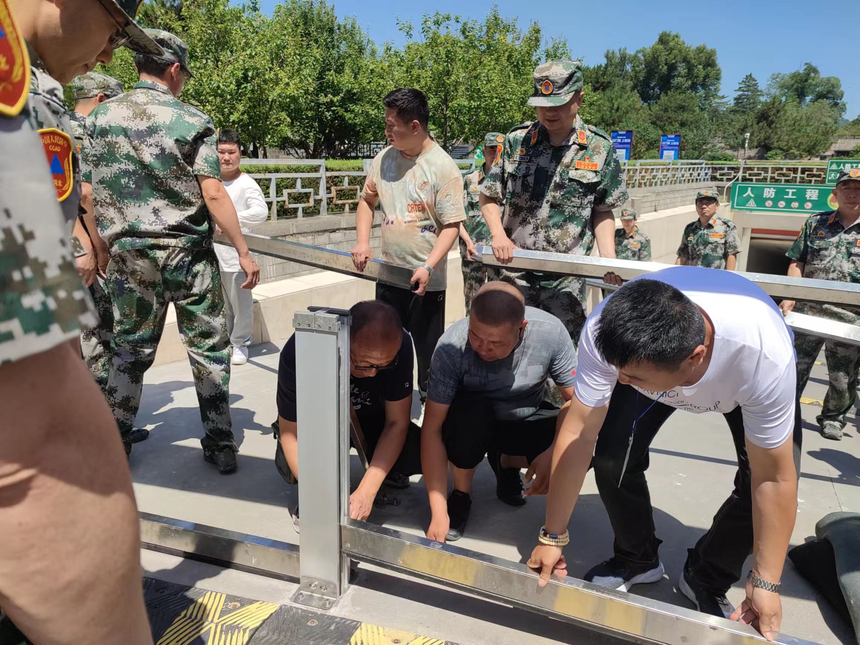 兩宮門地下停車場因地勢較低汛期的最大隱患就是雨水倒灌,這次防汛演練是一次實戰演練,用時5分鐘就完成了一處停車場入口的演練內容,做到擋板安裝完畢兩端螺銷固定不松動,擋板中部鋼結構支護不滑動,防汛沙袋堆堵密實。