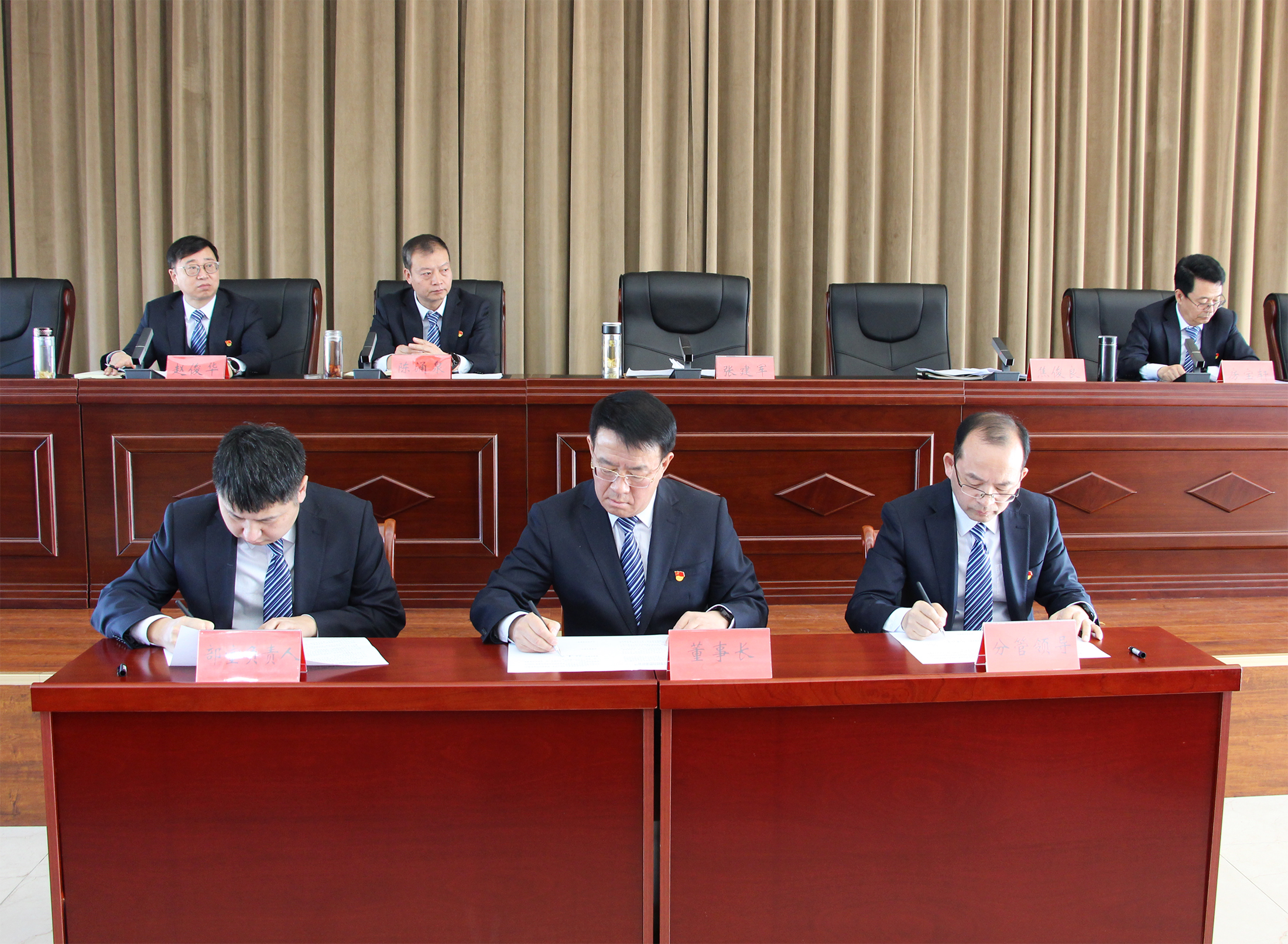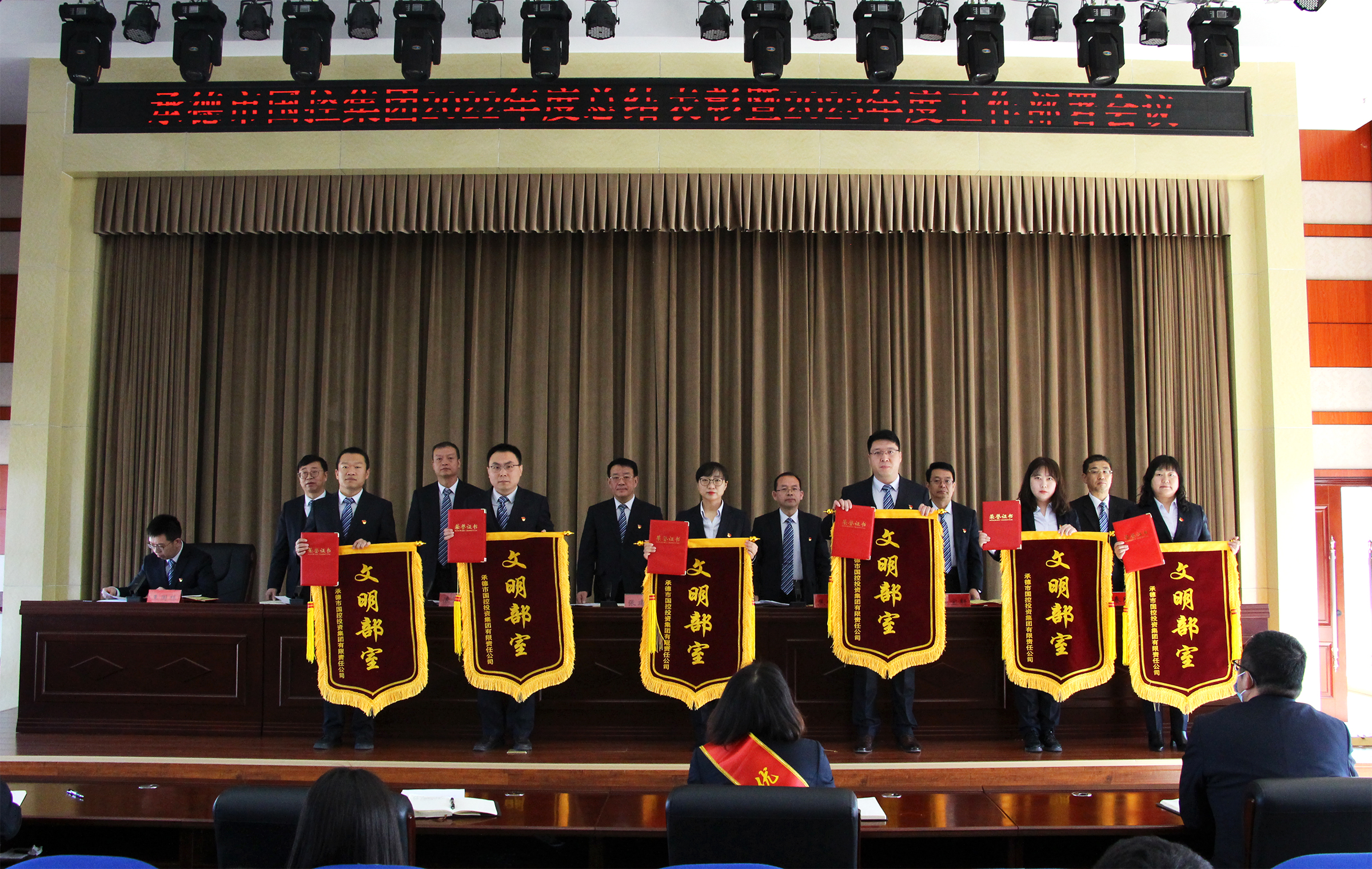 會議宣讀了集團公司2022年度受表彰情況,通報了獲得年度優秀的部室、子公司、中層管理人員及員工,與會領導向獲獎集體和個人頒發了錦旗、榮譽證書。按照2023年度工作部署要求,黨委書記、董事長張建軍代表集團公司逐一與集團公司各部室及實際控制子公司簽訂了《2023年度績效考核目標責任書》,堅持目標導向,強化責任,傳導壓力。