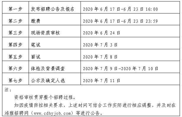 2020 年6 月 17日至 2020 年6月 23 日 16:00 在鴻雅招聘網(http://www.cdhyjob.com/)、鴻雅微信公眾號、國控集團官方網站等發布招聘公告。